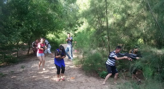 Then everyone put on bulletproof vest field equipment (electronic gun) under the guidance of the instructor to carry out the two real CS confrontation.